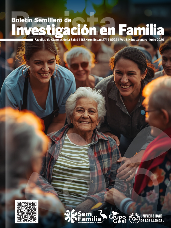 La Revista "Boletín Semillero de Investigación en Familia" es una publicación electrónica seriada de publicación semestral de la Universidad de los Llanos, vinculada al Semillero de Investigación en Familia y al Grupo de Investigación GESI, busca brindar un espacio de publicación de ejercicios derivados de la academia, la práctica y la investigación para estudiantes de pregrado y posgrado, profesionales y docentes de Ciencias de la Salud, Ciencias Sociales y áreas afines de instituciones nacionales e internacionales, en español, inglés y portugués, originales e inéditos.